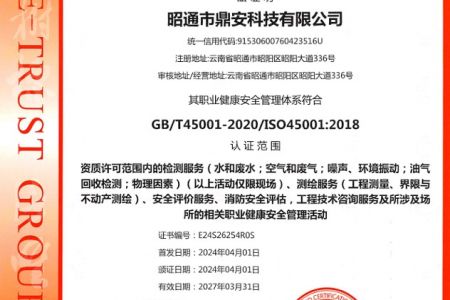 2003年11月10日,昭通市鼎安科技有限公司成立,初始主要從事第三方安全工程技術(shù)服務,經(jīng)多年運營,發(fā)展為多專業(yè)綜合科技平臺,為社會提供多種專業(yè)技術(shù)服務工作。 現(xiàn)公司注冊資金為1200萬元,公司法定代表人:毛衛(wèi)旭。公司主要業(yè)務:安全評價、安全標準化評審、安全工程技術(shù)服務;環(huán)境監(jiān)測、職業(yè)衛(wèi)生檢測、檢驗;法律訴訟及非訴訟服務;司法鑒定、固定資產(chǎn)投資項目節(jié)能服務;工程咨詢;工程測量測繪;安全教育培訓等。是安全生產(chǎn)服務、安全教育培訓機構(gòu),也是環(huán)境監(jiān)測和職業(yè)衛(wèi)生服務機構(gòu),同時也是綜合的檢測檢驗、綜合科技平臺服務機構(gòu)。多年來為公、檢、法、司、軍、警、海關(guān)、仲裁、安監(jiān)、工礦商貿(mào)企業(yè)、社會團體及個人提供多專業(yè)技術(shù)服務。